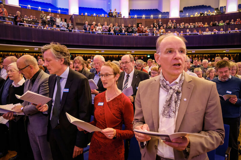 Zur Stärkung der Berufungsgewissheit erinnerte Landesbischof Meister im Abschlussgottesdienstes des Generalkonventes an die Ordination der Pastorinnen und Pastoren: „Bei unserer Ordination wurden wir mit Gebet und Auflegen der Hände in den Dienst als Pastorin oder Pastor berufen. Wir wurden berufen, gesegnet und gesendet. Daran wollen wir uns erinnern.“ Mit der feierlichen Erinnerung an die Ordination und dem gemeinsamen Abendmahl endete der erste landeskirchliche Generalkonvent.