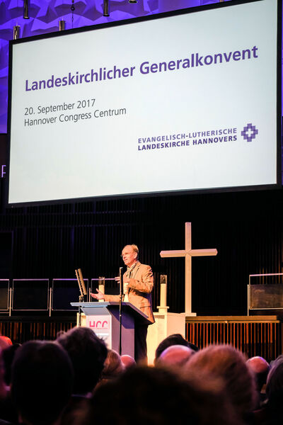 Hannover. „Es ist sehr schön und stärkend zu spüren, welche Kraft eine solche Gemeinschaft entfaltet, wie wir sie heute hier erleben“ sagte Landesbischof Ralf Meister am Mittwoch, 20.09., auf dem Generalkonvent der Evangelisch-lutherischen Landeskirche Hannovers. Mehr als 1.200 Pastorinnen und Pastoren aus Niedersachsen waren der Einladung in den Kuppelsaal in Hannover gefolgt.In Vorträgen, Diskussionen und Workshops überlegten die Theologinnen und Theologen, wie das Pfarramt zwischen inneren und äußeren Herausforderungen, zwischen Tradition und Strukturwandel beweglich und stark bleiben kann.
