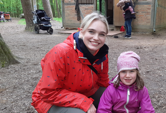 Magdalena Otto kam nach der Elternzeit in die Waldgruppe der Christuskita – als Mutter und als Erzieherin. Die 30-Jährige wurde auf unsere Einrichtung aufmerksam, als sie für ihre ältere Tochter einen Kitaplatz suchte und ist nun eine der zwei Erzieherinnen, die die 15 Kinder der Eichhörnchengruppe betreuen. Die jüngere Tochter hat sie mitgebracht in die Waldgruppe.