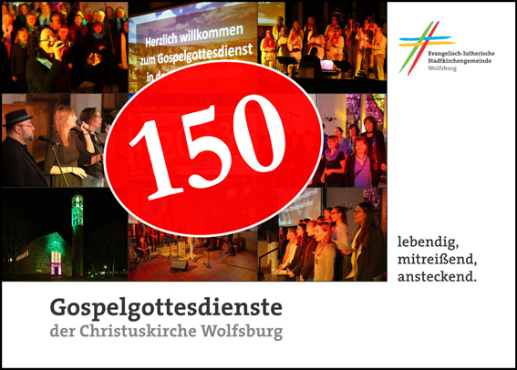 Die Wolfsburger Stadtkirchengemeinde feiert am 3. Oktober um 19:00 Uhr den 150. Gospelgottesdienst in der Christuskirche. Gospelpastor Joachim Dierks hatte die monatlichen Gottesdienste 2010 nach dem Vorbild der Gospelkirche Hannover ins Leben gerufen. Regionale Chöre geben dabei ein kleines, halbstündiges Gospelkonzert, an den sich ein gottesdienstlicher Teil anschließt. Von Pastor Frank Morgner 2014 übernommen, erfreuen sich diese Gospelgottesdienste immer am ersten Donnerstag im Monat großer Beliebtheit.