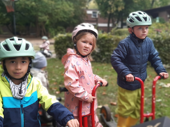 „Elisa muss mit mir regelmäßig meckern, weil ich öfter mal ihren Fahrradhelm vergesse“, erzählt der Versicherungskaufmann zur Genese der Spenden-Idee. Denn es sei Papa-Aufgabe, die Vierjährige morgens in die Kita zu bringen. Leihhelme gab es bisher nicht, für jedes Kind einen Ersatzfahrradhelm in der Kita zu deponieren, dafür fehlt schlicht der Platz. Und das wäre für die Familien, deren Kinder von Mike Lawrenz und seinem Team betreut werden, auch finanziell eine Zusatzbelastung.